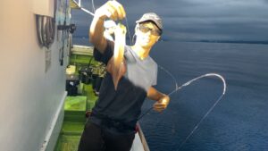 2024年9月4日 5名様出港 竿頭、33匹 時化て居て揺れている